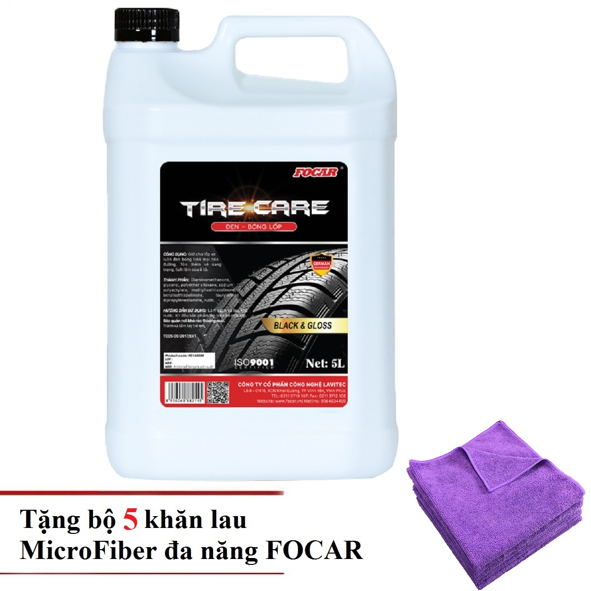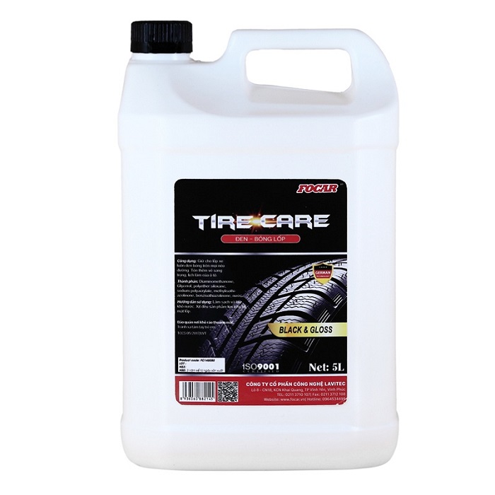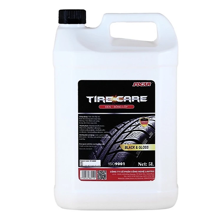 Dung dịch dưỡng đen bóng lốp ô tô Focar Tire Care 5L - Bí quyết bảo vệ lốp tối đa, giúp lốp đen bóng, bền đẹp, tăng tuổi thọ, tiết kiệm chi phí bảo dưỡng, thay lốp, giúp phần đảm bảo an toàn khi lái xe trên cao tốc.