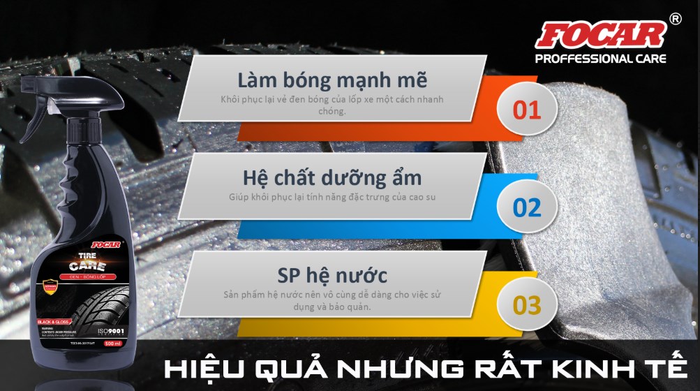 Ngoài tác dụng dưỡng bóng lốp xe, Focar Tire Care còn có ưu điểm: