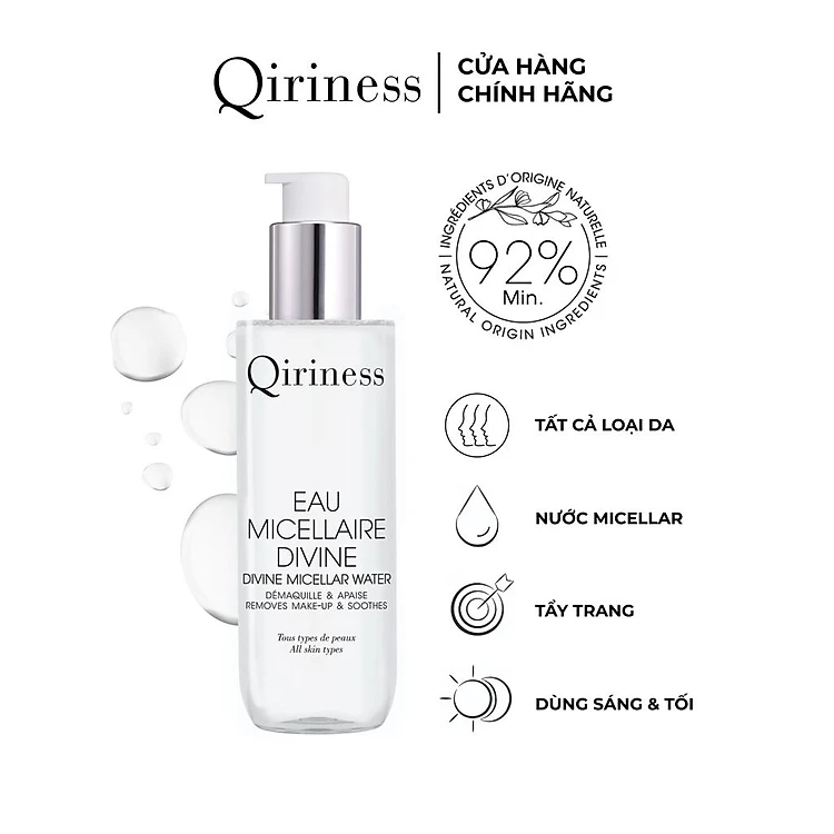 Dung dịch làm sạch và tẩy trang cho da nhạy cảm nguồn gốc thiên nhiên Qiriness Divine Micellar Water 200ml