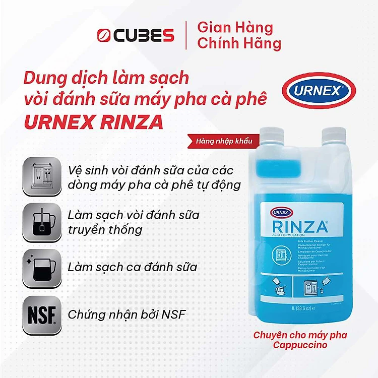 Dung dịch làm sạch vòi đánh sữa máy pha cà phê Urnex RINZA - Chuyên cho máy pha cappuccino - Hàng nhập khẩu