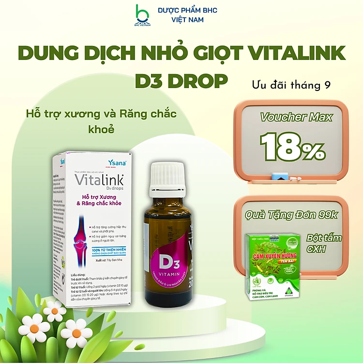 Dung Dịch Nhỏ Giọt Vitalink D3 Drop Bổ Sung Vitamin D3, Hỗ Trợ Xương Chắc Khỏe cho trẻ từ 1 tuổi