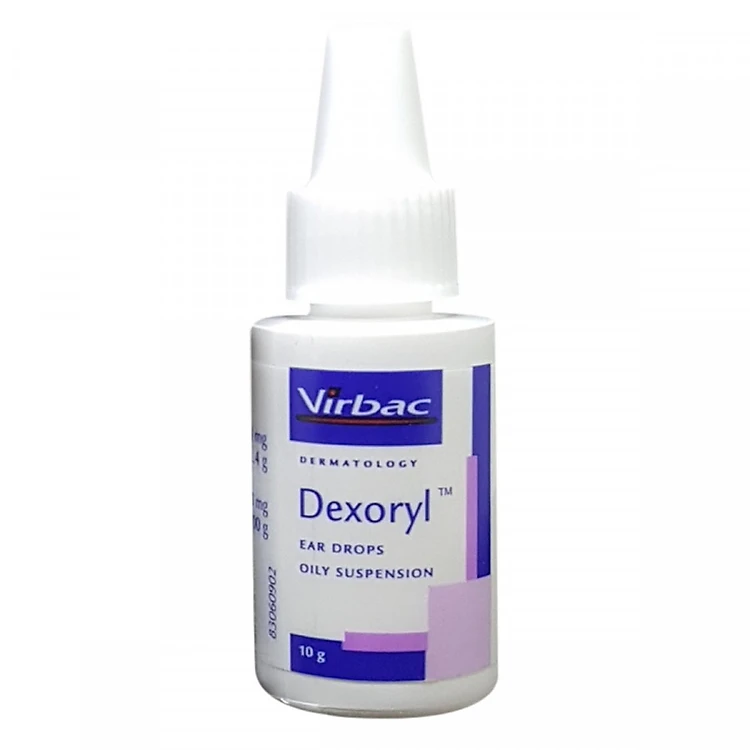 - Thuốc Nhỏ Tai Chó Mèo, Trị Viêm Tai, Nấm Tai Hiệu Quả Nhanh Virbac Dexoryl (10g) là một loại huyền dịch dầu dùng nhỏ tai với sự kết hợp của gentamycin, một chất kháng sinh thuộc nhóm aminosides có tác dụng chống lại vi khuẩn gram dương và gram âm, đặc biệt là Psedomonas và Staphylococcus spp.