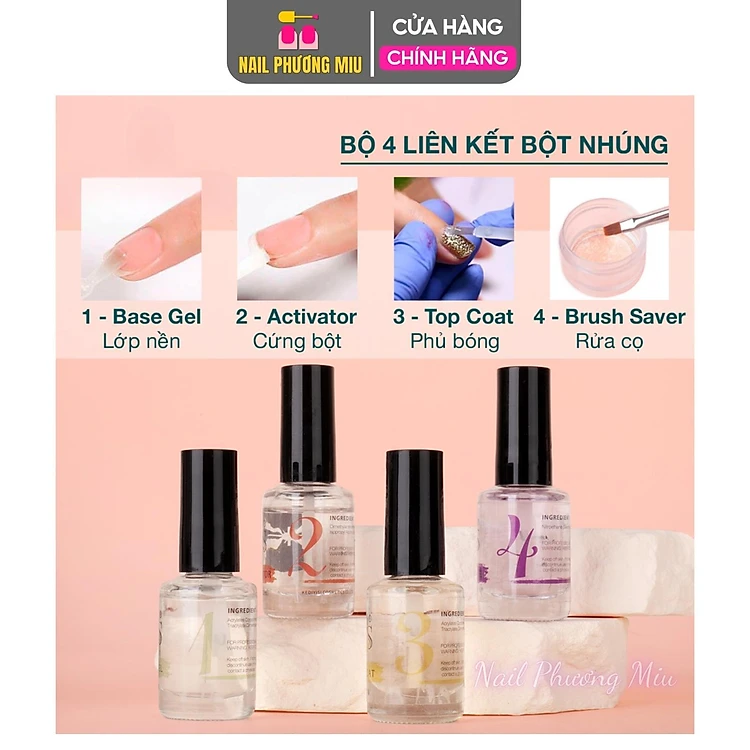 Dung Dịch Nhúng Bột KDS Base Không Cần Hơ Đèn Dung Tích Chai - Bột nhúng KDS Base gel, Activitor, Top: 15ml/chai