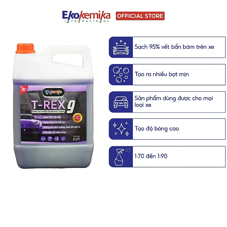 DUNG DỊCH RỬA XE MÁY Ô TÔ KHÔNG CHẠM EKOKEMIKA TREX-9 -5L