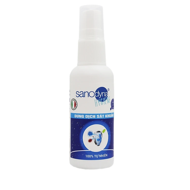 Dung dịch sát khuẩn Sanodyna với thành phần 100% tự nhiên, được chiết xuất từ quá trình điện phân Nước và Muối thu được hỗn hợp dung dịch chứa 99.98% nước điện phân (Oxi hoạt tính) và 0.02% HOCL.