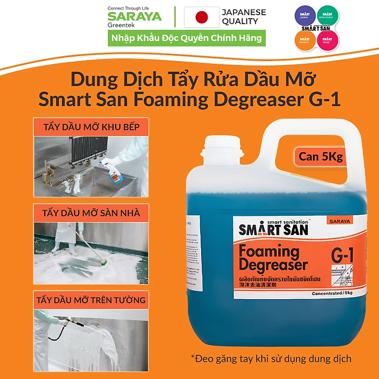Dung dịch tẩy rửa dầu mỡ Saraya Smart San Foaming Degreaser G-1 - Can 5Kg