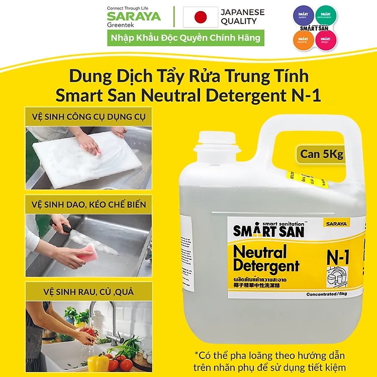 Dung Dịch Tẩy Rửa Trung Tính Rau, Củ, Quả Saraya Neutral Detergent N-1, Thân Thiện Với Da Và Môi Trường - Can 5Kg