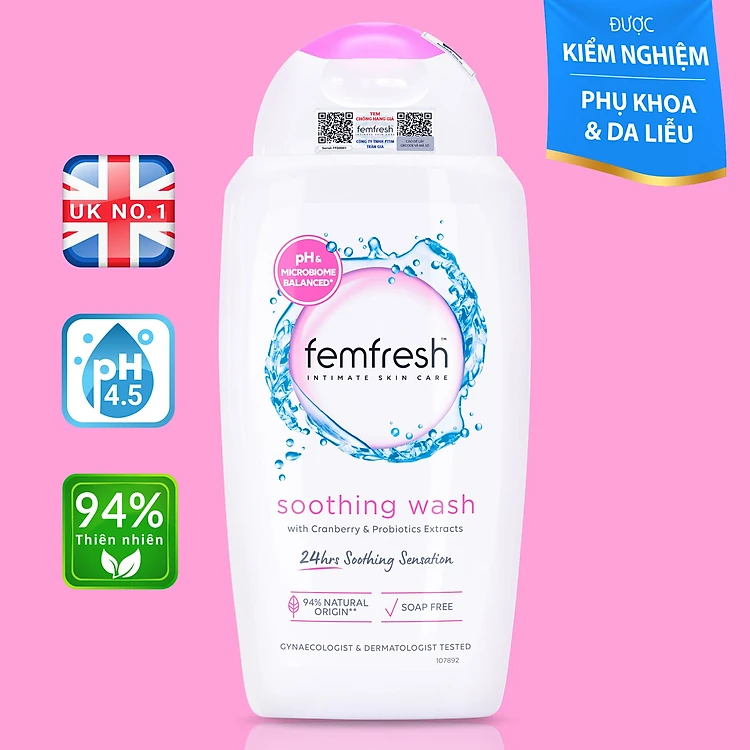 Dung dịch vệ sinh Anh Femfresh soothing wash giúp làm sạch sẽ, thơm mát, ngăn ngừa viêm, ngứa, nấm phụ khoa - QuaTangMe Extaste