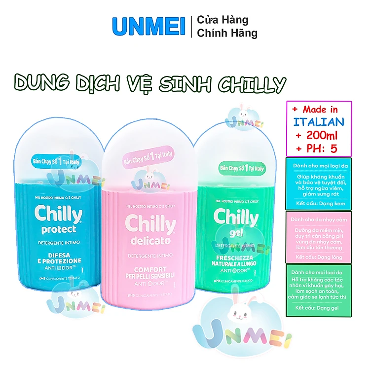 Dung Dịch Vệ Sinh Phụ Nữ Chilly Gel 200ml/chai - Hàng Chính Hãng Nhập Khẩu Ý