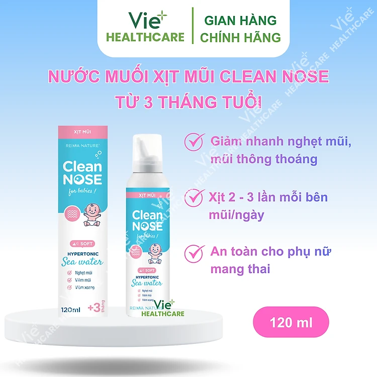 Dung dịch xịt mũi Clean NOSE® hỗ trợ giảm viêm mũi, nghẹt mũi, viêm xoang cho trẻ sơ sinh từ 3 tháng tuổi và người lớn.