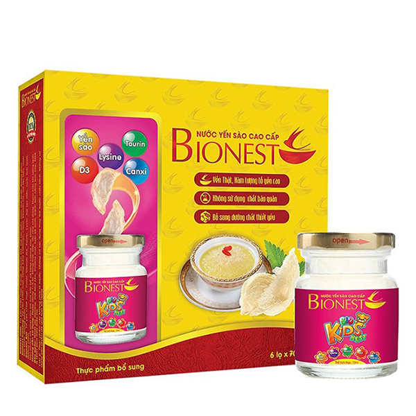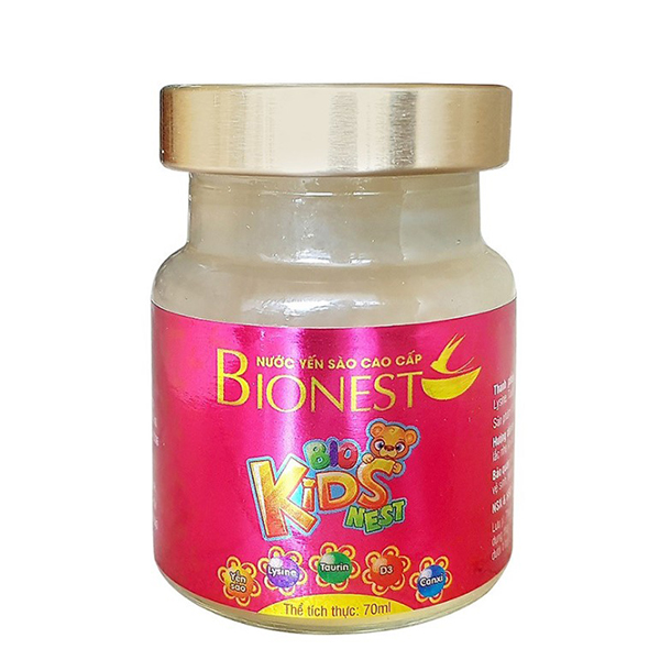 Yến sào cho bé biếng ăn Bionest Kids với thành phần từ yến sào thiên nhiên kết hợp với hồng sâm Hàn Quốc, giúp tăng cường sức khỏe một cách tự nhiên và an toàn. Lysin hỗ trợ trẻ biếng ăn, giúp ăn Taurine có tác dụng tham gia các quá trình chuyển hoá quan trọng trong cơ thể bé. Đặc biệt, Taurine có nhiều trong các mô cơ thể, trên võng mạc, bạch cầu, giúp cơ thể của chống ôxy hoá. Ngoài ra, Taurine còn hỗ trợ cho sự phát triển của hệ thần kinh trung ương và thị giác của bé. Bên cạnh đó, sản phẩm còn giúp bổ sung canxi giảm nguy cơ loãng xương. Vitamin D3 giúp cơ thể hấp thụ canxi, Vitamin D và canxi được sử dụng để điều trị hoặc ngăn ngừa chứng loãng xương, cải thiện sức khỏe răng miệng. Chất xơ hỗ trợ tiên hóa tốt cho bé. Sợi tảo biển giúp cung cấp một dưỡng chất cần thiết cho cơ thể phù hợp với hoạt động của cơ thể.