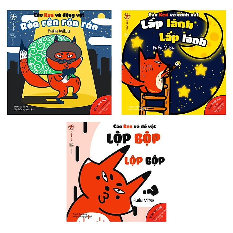 Ehon Nhật Bản - Những Điều Kỳ Diệu Của Âm Thanh - "Cáo Ken Và Cảnh Vật - Lấp Lánh Lấp Lánh" ; Cáo Ken Và Động Vật - Rón Rén Rón Rén" ; "Cáo Ken Và Đồ Vật - Lộp Bộp Lộp Bộp"