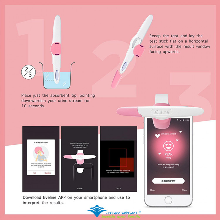 Bộ dụng cụ thử rụng trứng phụ nữ Eveline ra đời là một giải pháp tối ưu hóa sự phát hiện sớm thời gian rụng trứng của phụ nữ ngay trên điện thoại smartphone của bạn. Ngoài việc phát hiện được thời gian trứng rụng, Eveline còn cho biết chất lượng trứng khỏe mạnh hay yếu để chị em phụ nữ có kế hoạch sinh con.