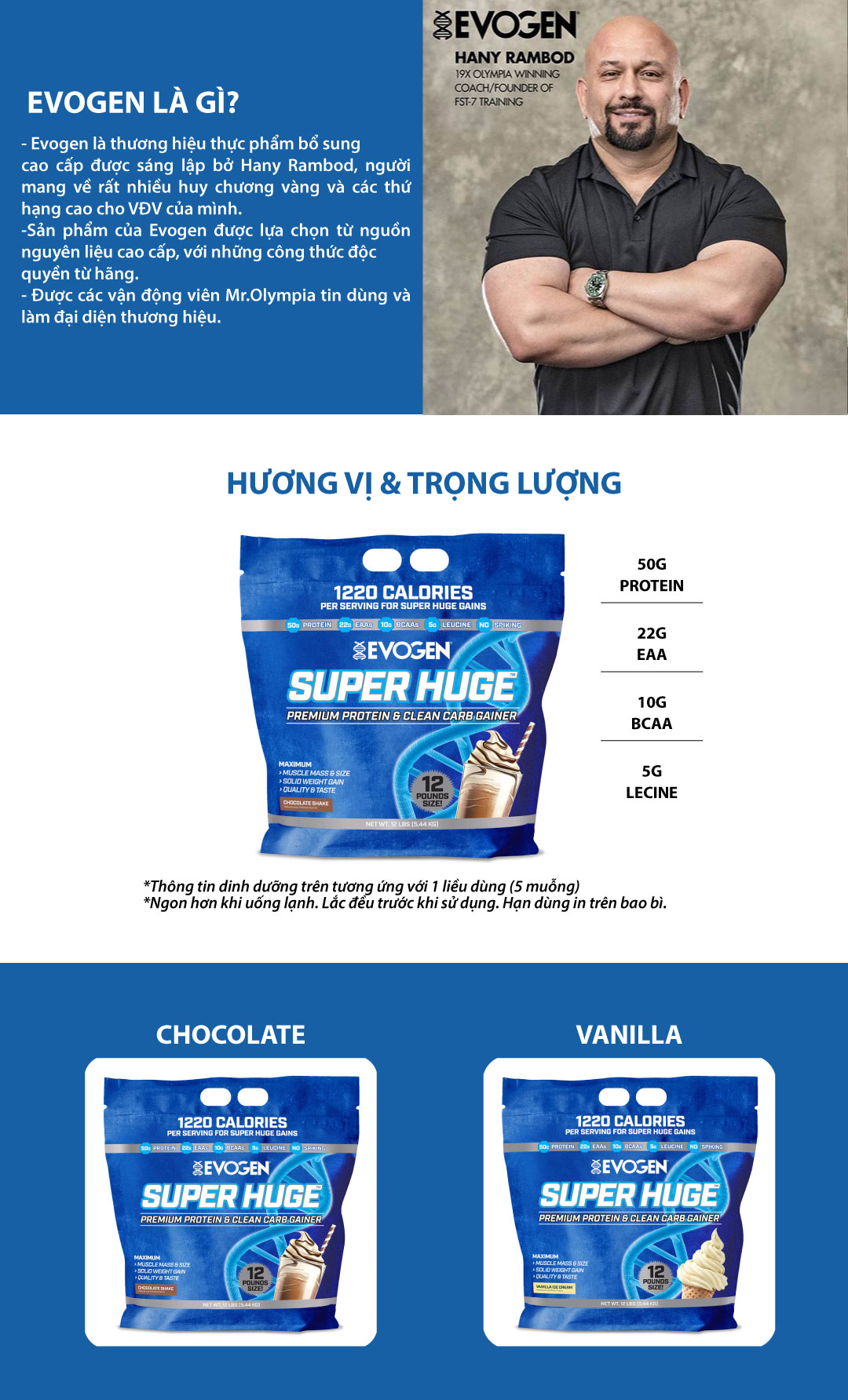 Với việc không sử dụng đường trong sản phẩm kết hợp nguồn carb phức, giàu xơ và không làm tăng mỡ sẽ giúp bạn hạn chế được việc lên mỡ hơn. Bạn sẽ tăng cân tăng cơ nhanh, thân hình chắc khỏe, vạm vỡ, chứ không béo phì, không lên nhiều mỡ thừa hay không béo tròn. Để đạt được hiệu quả trên Hanny Rambod của Evogen đã xây dựng công thức và các thành phần cực kỳ chất lượng trong 1 liều dùng: