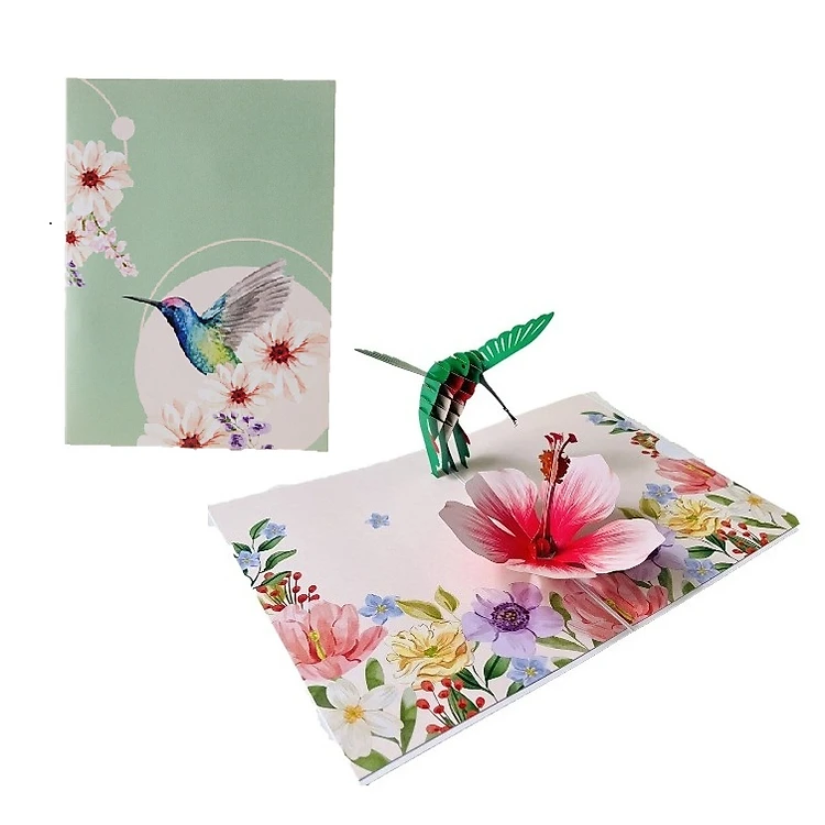 F35 - Thiệp 3D Chim Ruồi & Hoa Dâm Bụt – Pop Up Card Viethands Giftshop