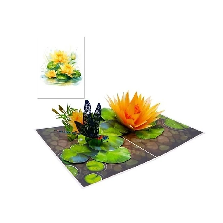 F57 - Thiệp 3D Hoa Súng Vàng & Chuồn Chuồn – Pop Up Card Viethands Giftshop
