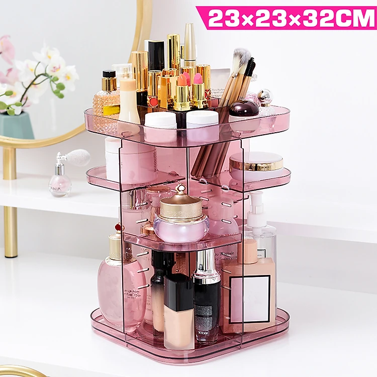 Fashion Home 360 Degree Rotate Cosmetic Makeup Storage Box Makeup Organizer Box Rotating Plastic Adjustable Rack