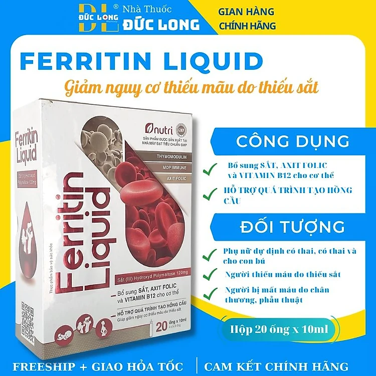 Ferritin Liquid – Bổ sung sắt, Hỗ trợ giảm nguy cơ thiếu mãu do thiếu sắt – hộp 20 ông – NUTRI – Đức Long