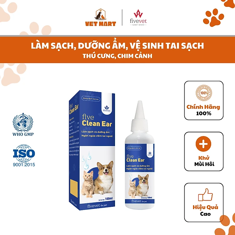 Five Clean Ear for pet - Làm sạch, dưỡng ẩm tai cho thú cưng (100ml)