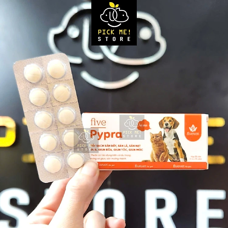 Five-Pypra Xổ Giun Sán, Ấu Trùng và Trứng Giun cho Chó Mèo Dạng Viên