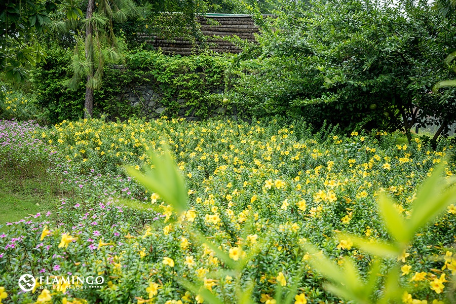 Nằm trên các trục đường chính, nối thẳng từ cổng Bắc ra phía Nam với tầm nhìn tuyệt đẹp, đến với Flamingo Đại Lải Resort du khách được đắm mình giữa những vườn hoa tuyệt sắc với nhiều loài hoa quý, từ những loài hoa thân quen như: Hoa hồng, hoa mai, hoa đào, hoa mận… đến những cái tên lạ tai: Hoa cỏ vàng Pháp, thạch thảo, lobolia,… Hội tụ đủ các gam màu rực rỡ, hoa đua nhau khoe sắc, làm nên vẻ đẹp đặc trưng cho Flamingo Đại Lải Resort. Tất cả hiện lên bức tranh tổng thể hài hòa, đa sắc, một địa cảnh phiêu lãng gợi lên chất văn, chất nghệ và chất nghỉ dưỡng hàng đầu Việt Nam.