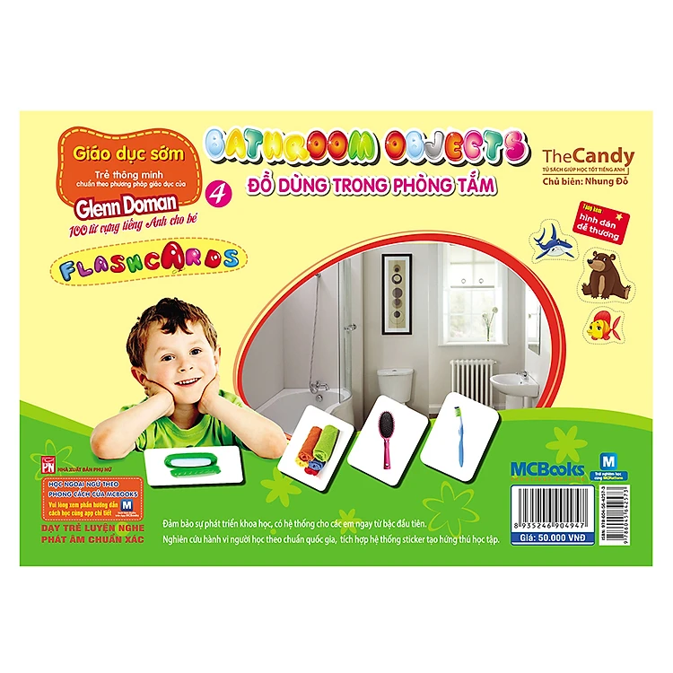 Flashcard Dạy Trẻ Theo Phương Pháp Glenn Doman - Đồ Dùng Trong Phòng Tắm gồm các thẻ học từ vựng Tiếng Anh thông minh chuẩn theo phương pháp giáo dục của Glenn Doman.