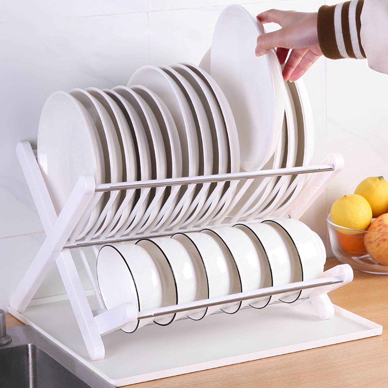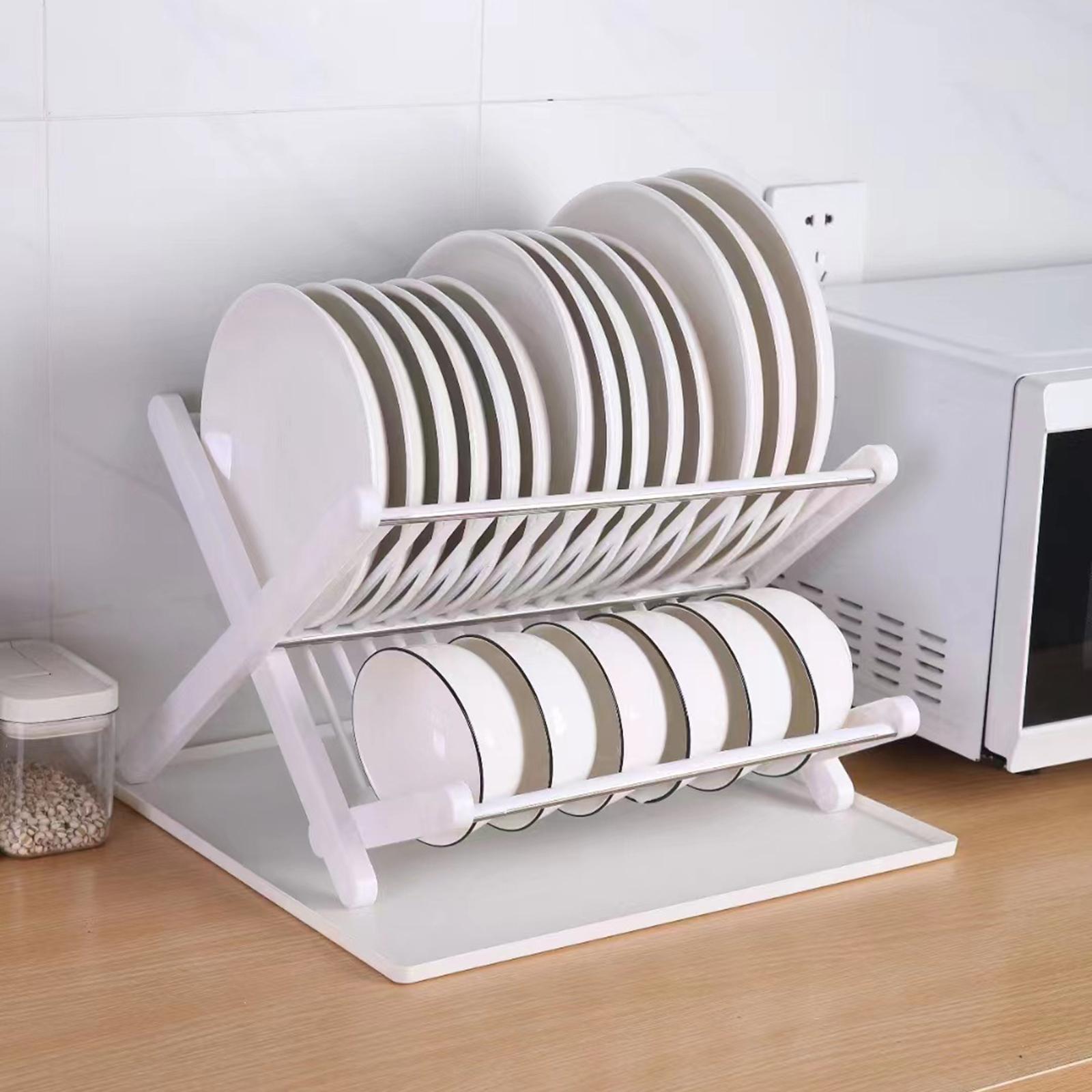 【Application】: This Kitchen Folding Dish Rack is suitable for kitchen, home, dining room, restaurant, countertop, pantry, etc.