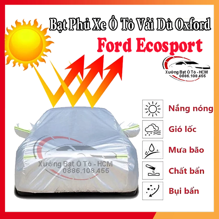 [FORD ECOSPORT] Bạt Phủ Ô Tô Vải Dù Oxford, Tráng Nhôm Cao Cấp, Áo Trùm Bảo Vệ Xe FORD ECOSPORT, Bạc Phủ Trùm Chống Nóng Chống Mưa, Chống Xước Xe, Bạt Của Xưởng Được May Theo Kích Cỡ Xe, Cam Kết Vừa Xe, Bền Và Đẹp Tới 2 Năm
