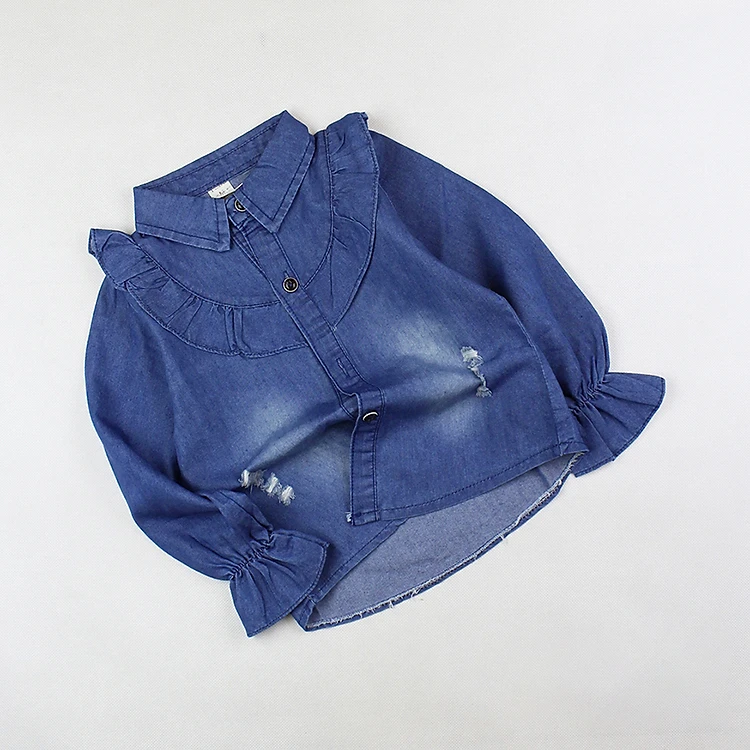 • Sơ mi tay dài Quảng Châu cho bé gái được may từ vải denim jean nhập 100% cotton
