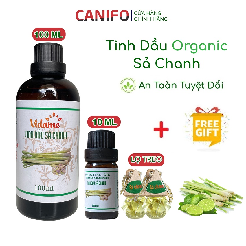 Tinh Dầu Sả Chanh CANIFO Organic Chai 100ml, 10ml Và Lọ Tinh Dầu Treo Xe Ô Tô - HÀNG CHÍNH HÃNG, Tinh Dầu Xả Đuổi Muỗi, Xông Thơm Phòng, Khử Mùi Dùng Cho Máy Khuếch Tán, Đèn Xông An Toàn Tuyệt Đối.