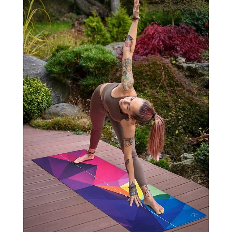Thảm tập yoga chính hãng Yvonne, Geometric (TẶNG KÈM 3 PHẦN QUÀ) dày 6mm bề mặt nhám, siêu bám, chống trơn trượt, ưa mồ hôi