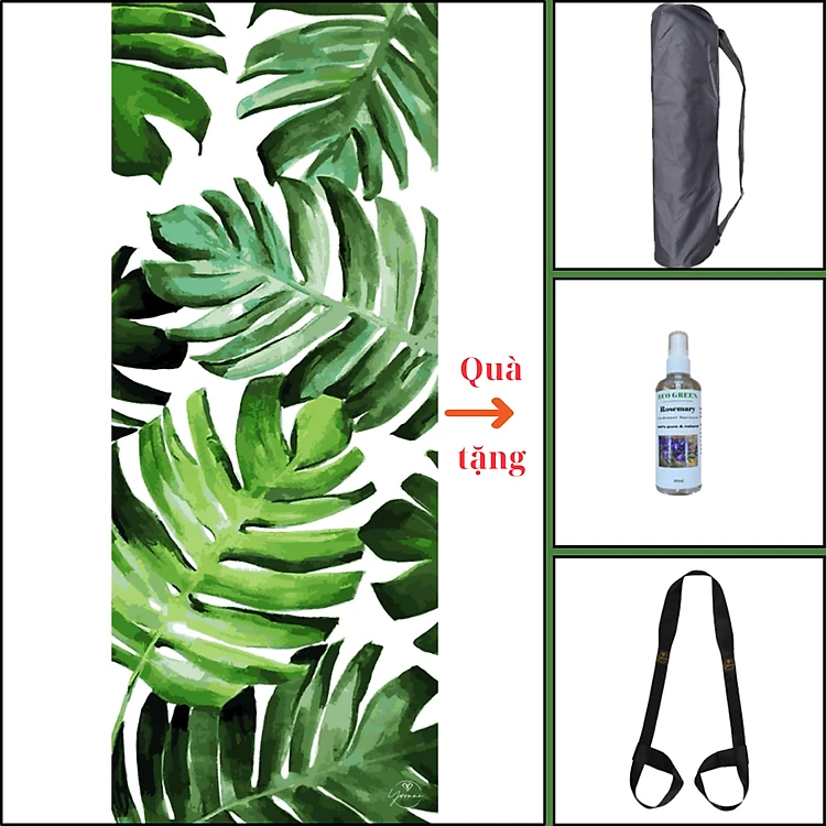 Thảm tập yoga chính hãng Yvonne, Monsteria Leaf (TẶNG KÈM 3 PHẦN QUÀ), dày 6mm bề mặt nhám, siêu bám, chống trơn trượt, ưa mồ hôi