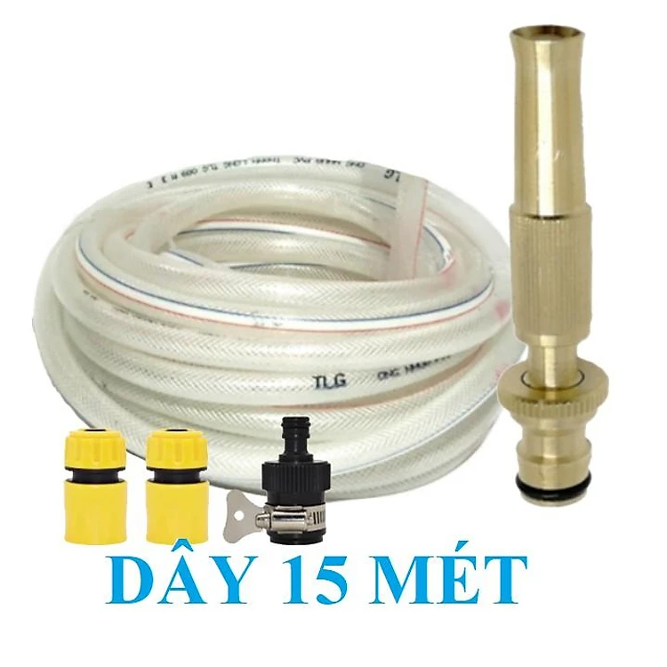 ️ Bộ dây vòi xịt nước rửa xe, tưới cây , tăng áp 3 lần, loại 15m 206701-1 đầu đồng,cút+ mở chai