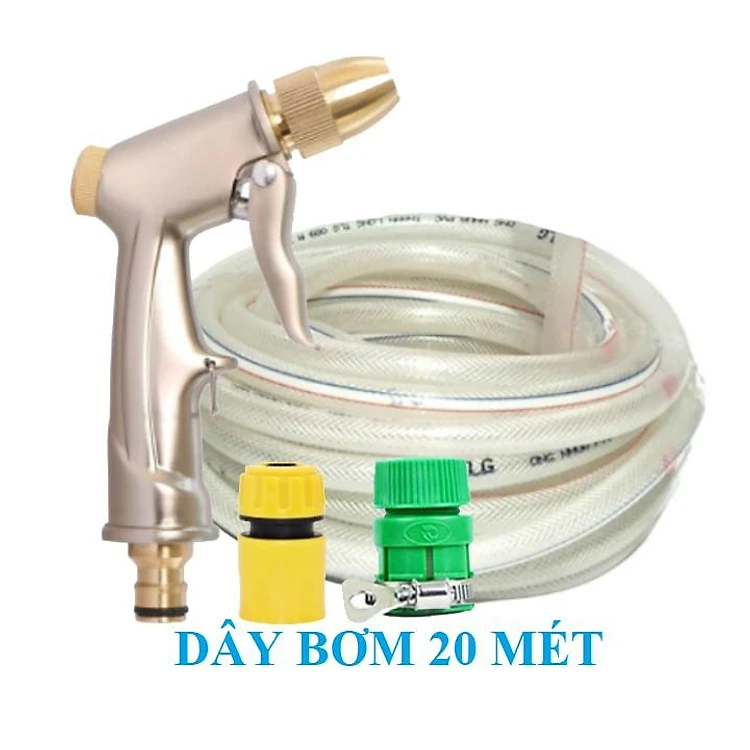 ️ Bộ dây vòi xịt nước rửa xe, tưới cây , tăng áp 3 lần, loại 20m 206587 cút sập,nối vàng + mở chai