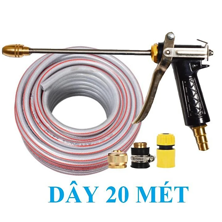 ️ Bộ dây vòi xịt nước rửa xe, tưới cây , tăng áp 3 lần, loại 20m 206701-2 đầu đồng, cút, nối đồng nhựa