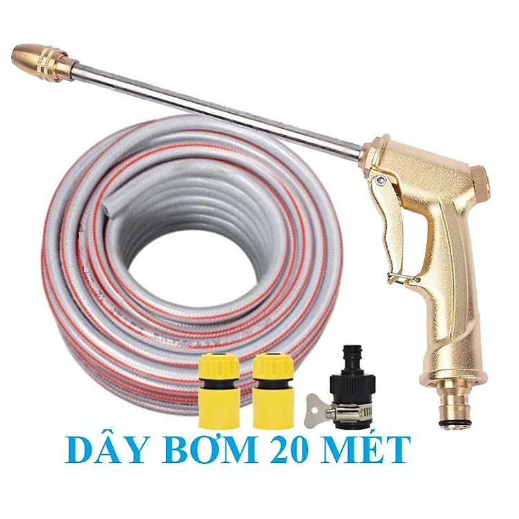 ️ Bộ dây vòi xịt nước rửa xe, tưới cây, tăng áp 3 lần, loại 20m 206701-3 đầu đồng,cút,nối nhựa đen