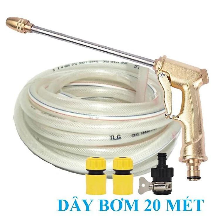 ️ Bộ dây vòi xịt nước rửa xe, tưới cây, tăng áp 3 lần, loại 20m 206701-3 đầu đồng,cút,nối nhựa đen