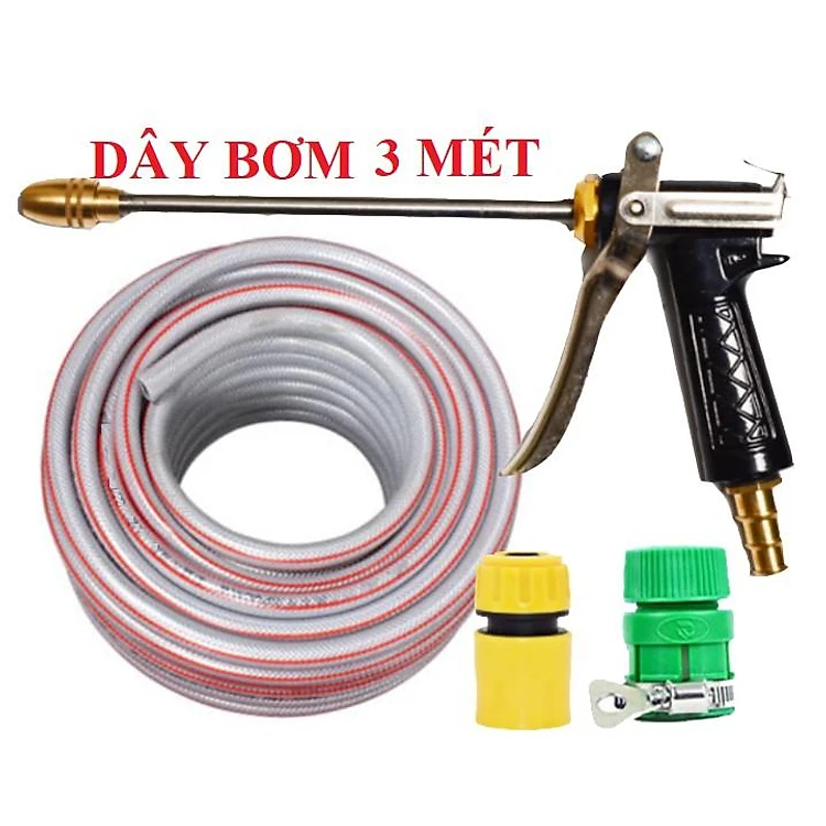 ️ Bộ dây vòi xịt nước rửa xe, tưới cây , tăng áp 3 lần, loại 3m, 5m 206318Iđầu đồng, cút+ túi đựng bút