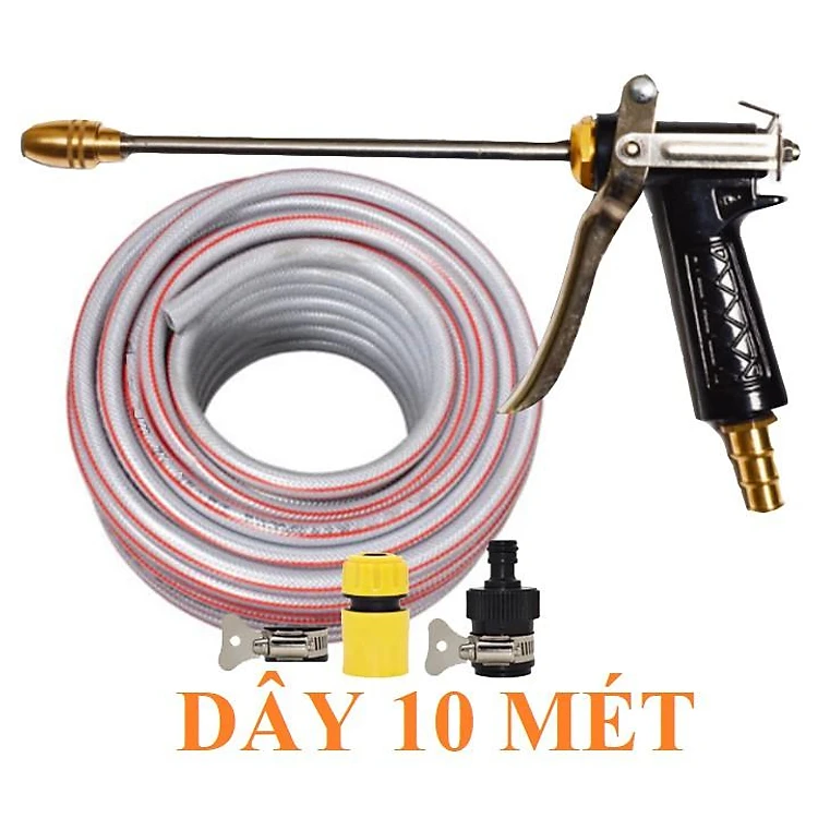 ️ Bộ dây vòi xịt nước rửa xe, tưới cây , tăng áp 3 lần, loại 7m, 10m 206318 đầu đồng,đai,nối nhựa đen