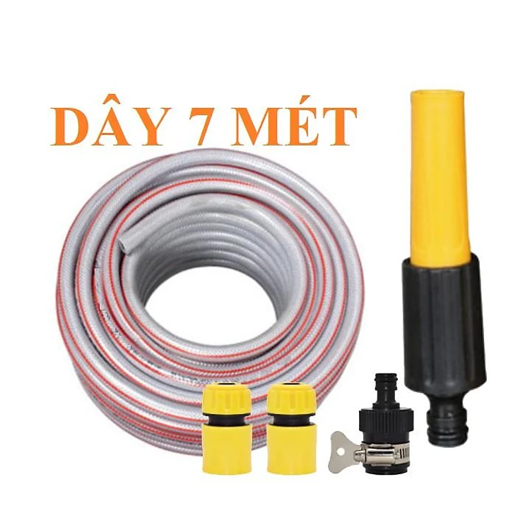 ️ Bộ dây vòi xịt nước rửa xe, tưới cây , tăng áp 3 lần, loại 7m, 10m 206622-5 cút sập,nối đen
