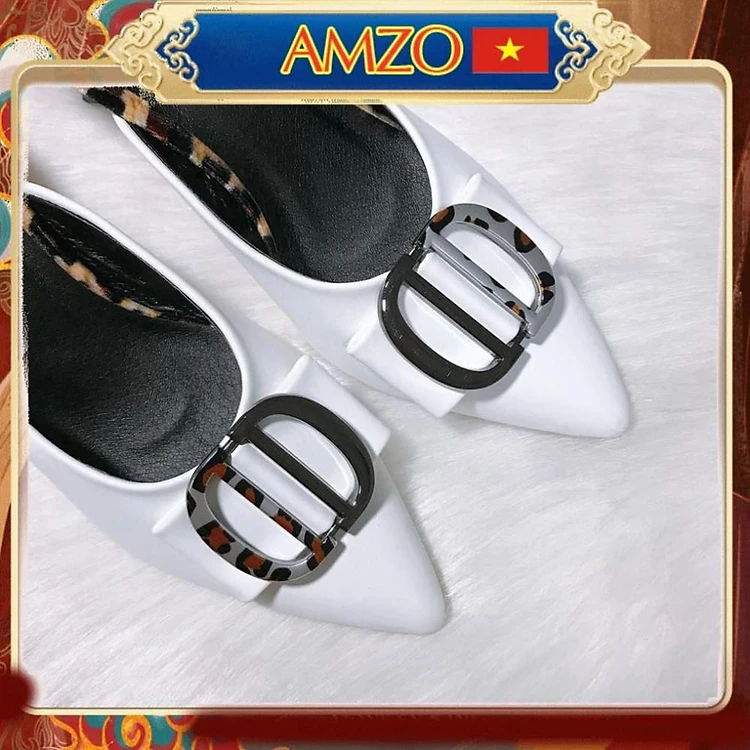 Sục nữ cao gót - giày sục nữ da mềm, đế cao 7 cm phối khóa, giày sục nữ đế cao sang chảnh màu đen -trắng -kem
