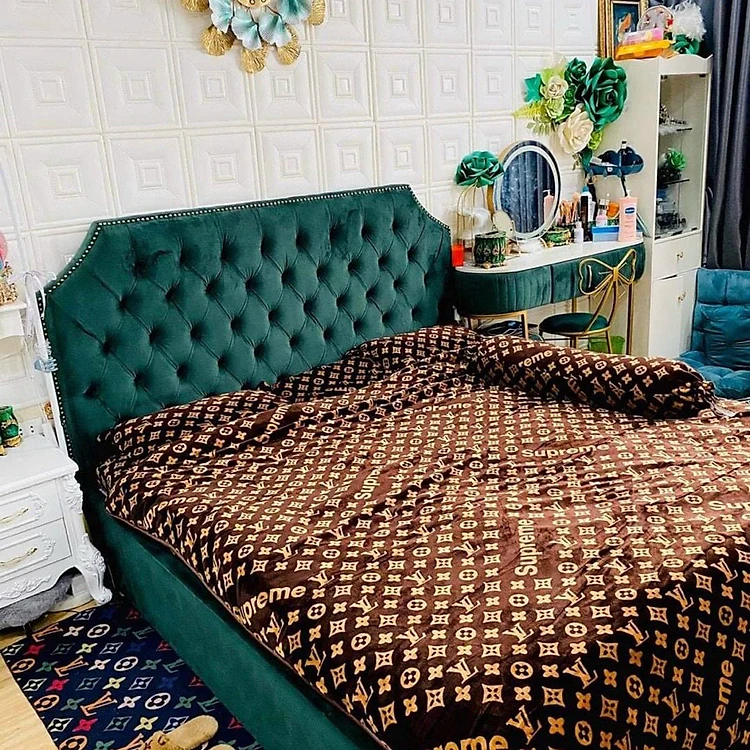 Giường ngủ bọc nệm nhung, giường bọc nệm hiện đại chắc chắn