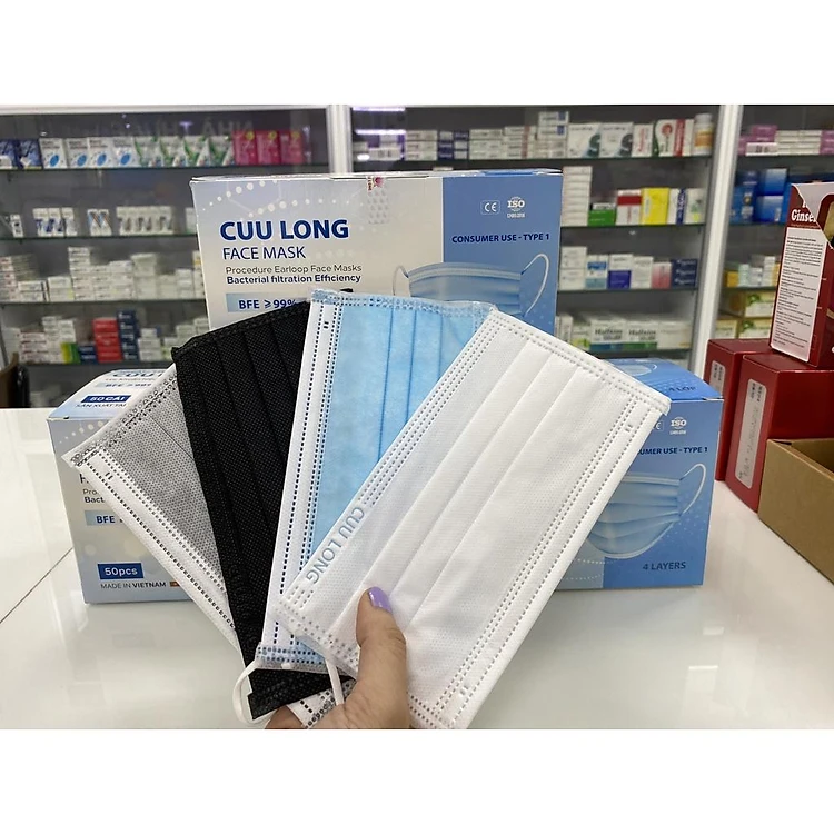 Freeship-Khẩu trang y tế 4 lớp Cửu Long màu trắng, đen, xanh, xám- Face Mask hộp 50 cái