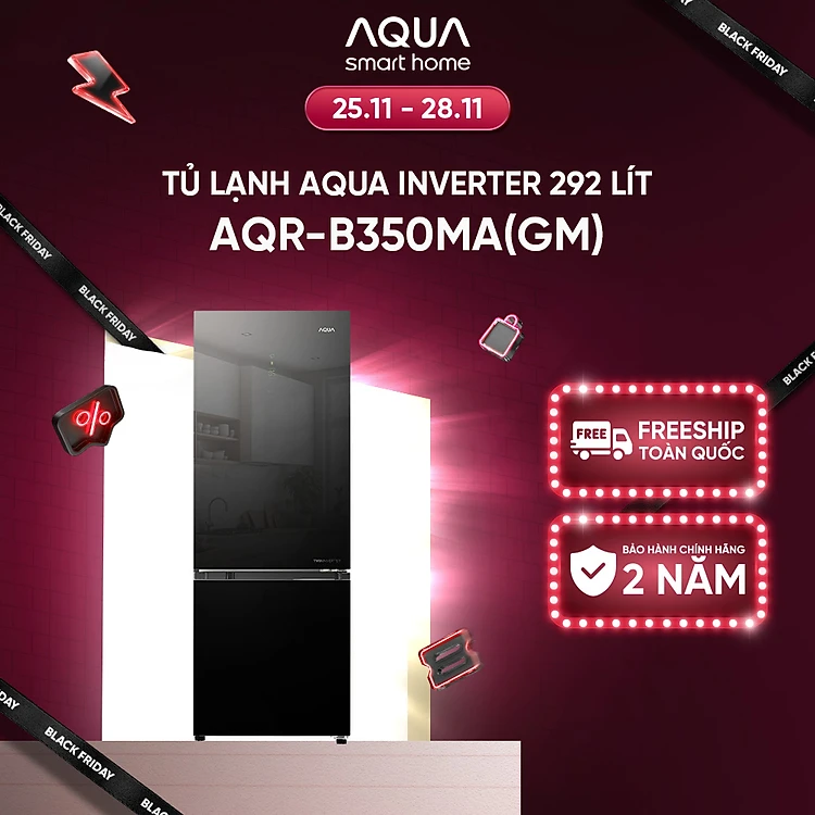 Freeship toàn quốc - Tủ lạnh ngăn đông dưới Aqua Inverter 292 lít AQR-B350MA(GM) - Bảo hành 2 năm - Hàng chính hãng