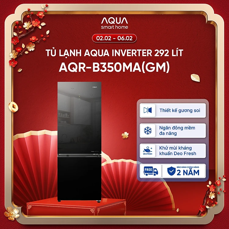 Freeship toàn quốc - Tủ lạnh ngăn đông dưới Aqua Inverter 292 lít AQR-B350MA(GM) - Bảo hành 2 năm - Hàng chính hãng