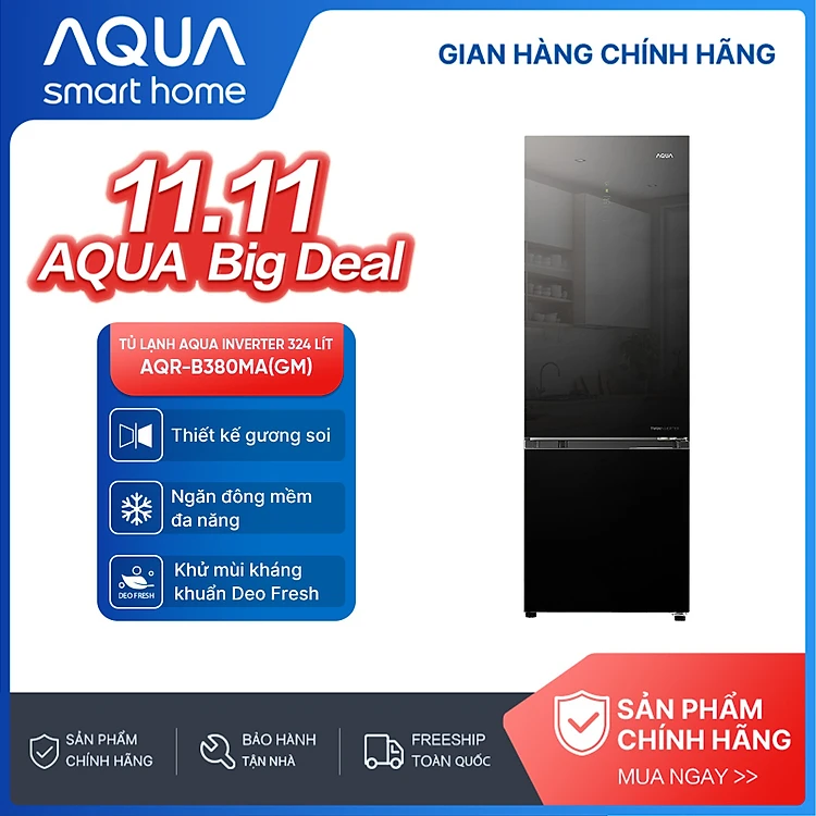 Freeship toàn quốc - Tủ lạnh ngăn đông dưới Aqua Inverter 324 lít AQR-B380MA(GM) - Bảo hành 2 năm - Hàng chính hãng