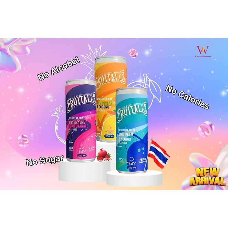 [Fruitales] Combo 3 lon Mocktail 3 vị mới: không đường, không cồn, không calo - Rum Dừa & Dứa, Champagne lựu đỏ, Soju Mận & Yogurt