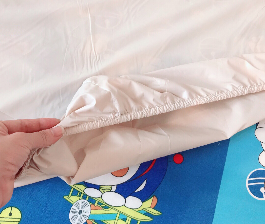 Ga chống thấm làm từ chất liệu vải lụa tổng hợp rất mềm mại, có khả năng chống tràn tốt, khi bé tè dầm ra ga mẹ chỉ cần dùng một chiếc khăn sạch lau hoặc tháo ga ra giặt sạch một cách dễ dàng.