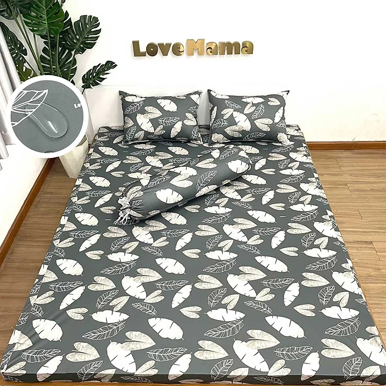 Ga chống thấm Cotton LoveMama chống thấm nước Họa tiết lá xám
