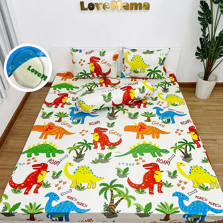 Ga chống thấm Cotton LoveMama Sóng Biển chính hãng loại 1 mềm mại thoáng mát